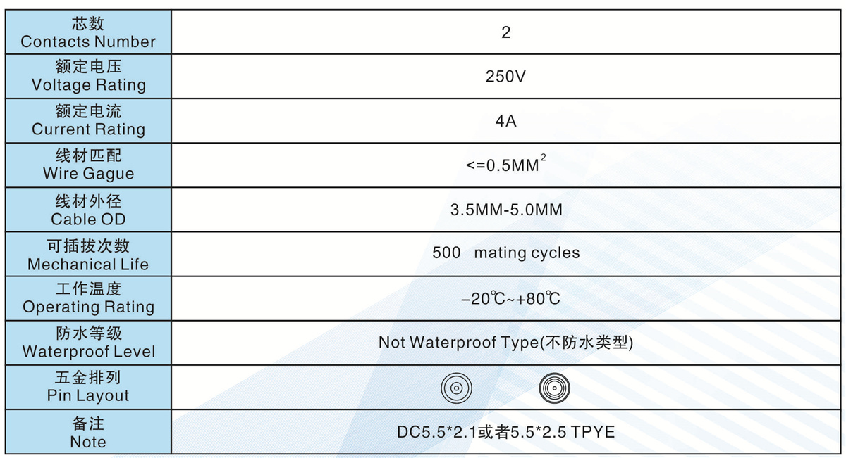 線材匹配(Wire Gague):<=0.5MM2