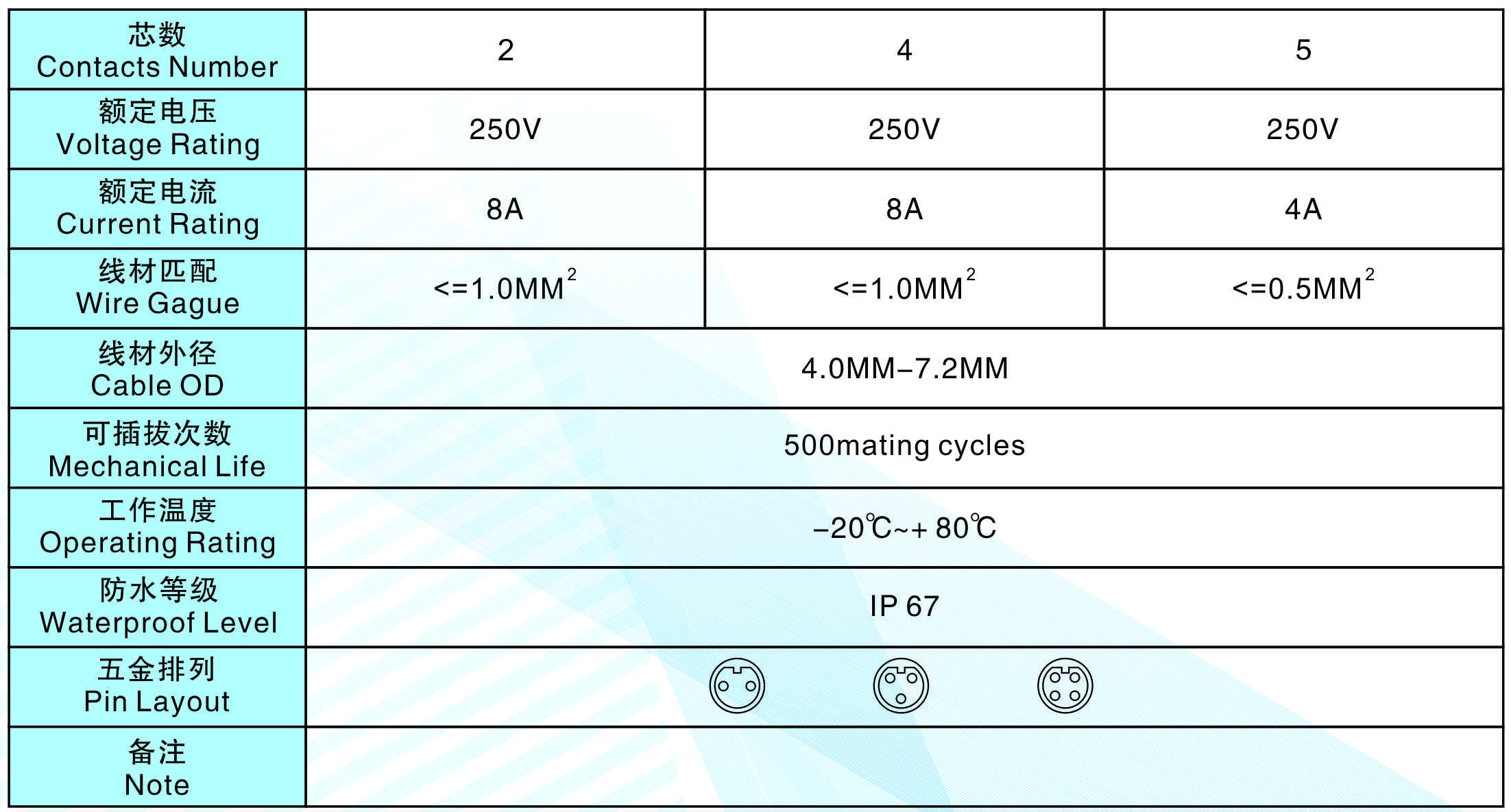 芯數(Contacts Number): 2 - 4 芯